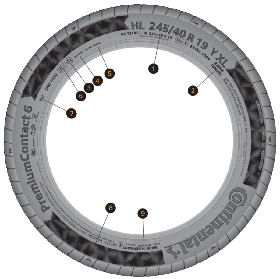 Auf der Reifenflanke findest du verschiedene Angaben, welche den Reifen beschreiben und folgendes bedeuten: